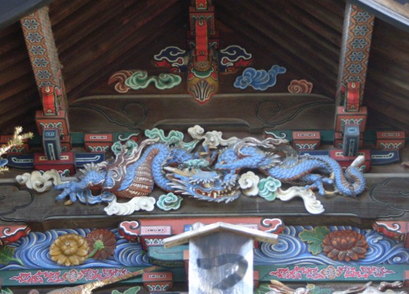 ![]() 秩父神社には、左甚五郎作の彫刻「つなぎの龍」と呼ばれているものがありますが、これには不思議な伝説が残されています。 昔、龍の彫刻があまりに上手に彫られていたため、魂が宿った龍が夜な夜な抜け出し、田畑で暴れまわって作物を荒らしていました。これに困った農民たちは、宮司の力を借りて、龍の彫刻を鉄の鎖で縛り付けたところ、龍は現れなくなったそうです。 秩父札所十五番少林寺近くにあった天ヶ池の龍が暴れた時に、必ずこの彫刻の下に水が溜まっているので、龍の彫刻を鎖で繋いだところ、龍が現れなくなったと言う話もあります。 |